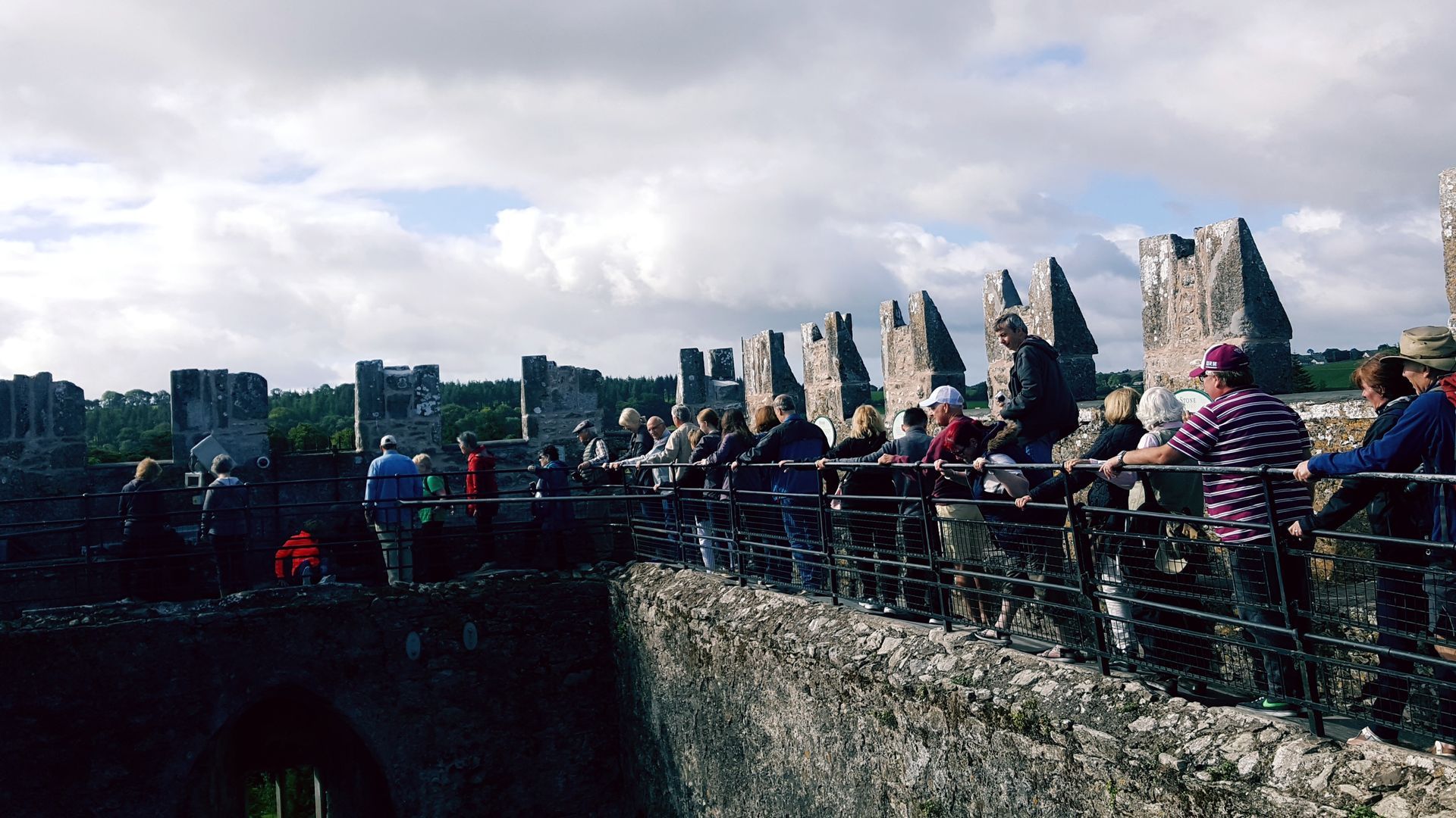 Facem poze stanga – dreapta in timp ce ne indreptam spre castel, pe pod si fara pod, cu cetate si fara. Acum suntem gata sa exploram castelul construit in secolul 14 in still turn etajat. Ne simtim bine pentru ca am avut ploaie de o saptamana si e prima zi cu soare in Irlanda. E o zi rece, dar un senin albastru.