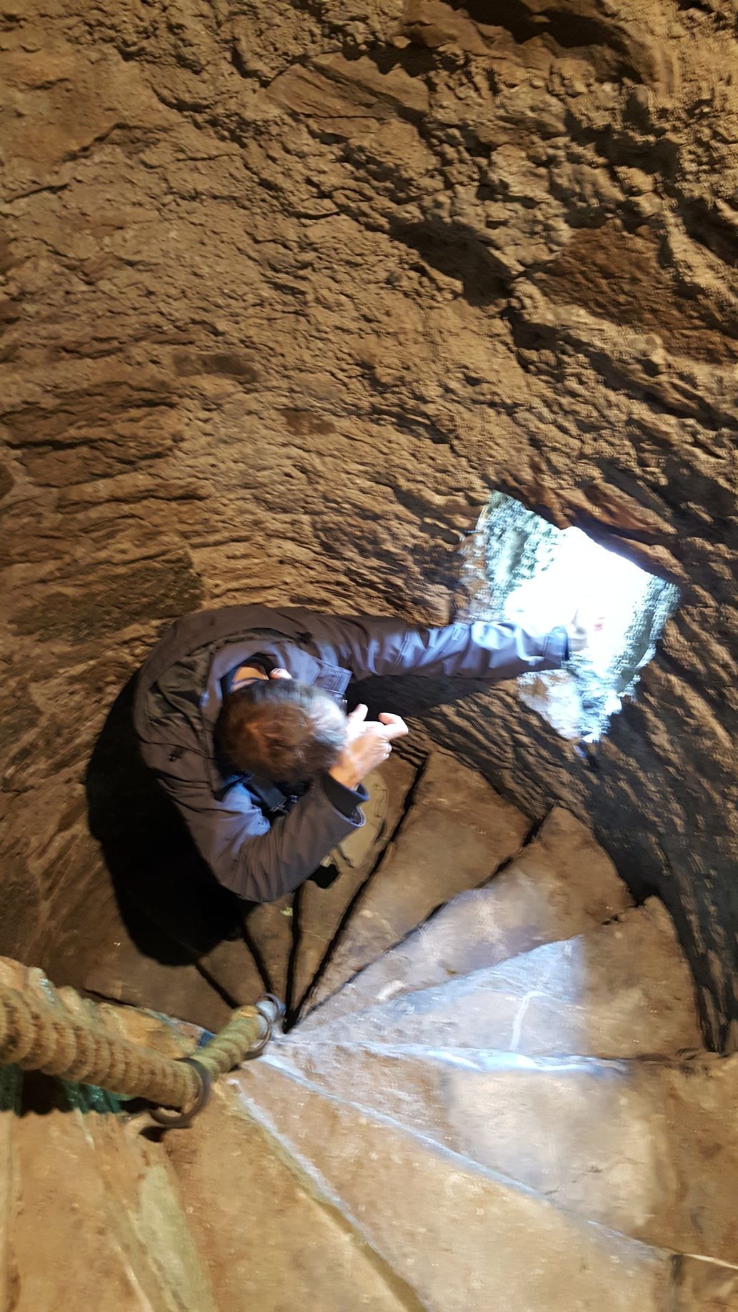 Urcam scarile inguste pana la urmatorul nivel, si suntem mandri ca nu ne-am oprit deloc sa ne odihnim si nu gafaim. Aici e inghesuiala mare. Vrem sa ne intoarcem pe unde am venit dar nu e posibil. Altii urca pe aceleasi scari inguste.